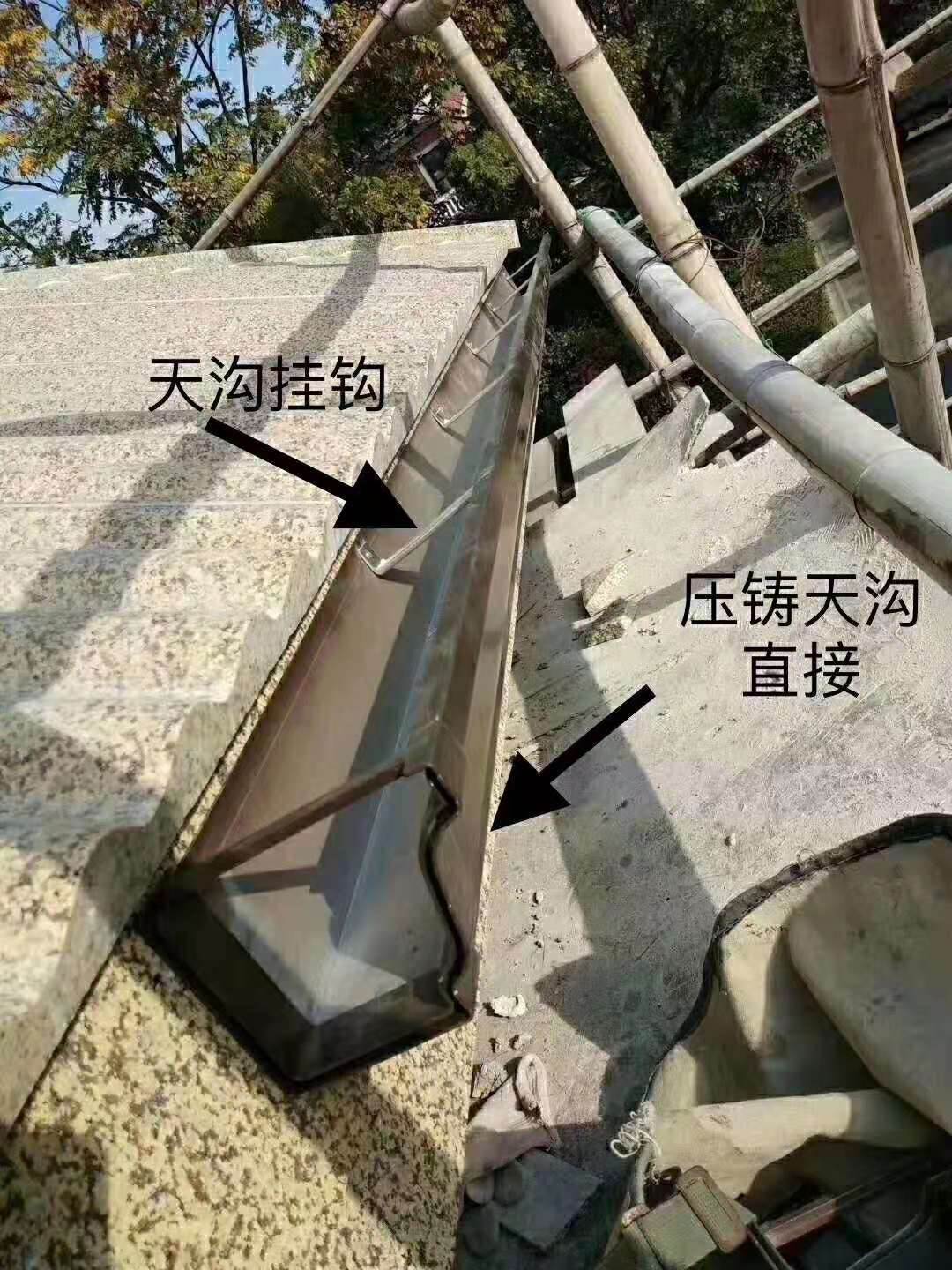 南京彩铝天沟落水管K型铝合金雨水槽,彩铝落水系统的特性1.彩铝落水内部构架的设计保持了落水系统的持久力和坚硬度。2、两部分固定夹片的设计使落水管看起来美观大方,并能很好的固定于任何外墙立面。3、防护网和圆形内壁设计减少了除污的次数并使得除尘变得方便和快捷。4、整个落水系统外形美观,色泽优雅。5、韧性好,低温抗冲击性佳,能抵抗冲击,梯子搭靠的压力,积雪,不易出现凹陷,扭曲或变形。6、更耐高温,能抵抗长时间的阳光曝晒。7、抗紫外线,耐老化性能好,抗酸碱腐蚀,历久如新。8、切割容易,安装简便,不需要特殊工具。9、成熟的配方技术,保持产品性能具有超群的稳定性。10、天沟封盖制作精致,构件间采用嵌抽式连接的可靠方式,确保系统不渗漏,排水更畅通。11、天沟内壁为小弧边设计,防止污垢集结,便于清洗。12、落水斗附有带锁定装置的特殊提升构件,方便移动(如修剪草坪或定期维修时)。落水系统的颜色彩铝落水系统的颜色是尊贵的亚白色。 双倍有效落水采用新颖的技术方案,不但开发出PVC双壁天沟系统,还有更好的彩铝仿铜落水系统的5-7英寸彩铝系统,以装饰性的檐口设计,与房屋建筑风格浑然一体。结构设计恰到好处,性能更优越,能抵抗冲击、梯子搭靠的压力、积雪或长时间阳光曝晒,不易出现凹陷、扭曲或变形。双壁落水系统是完全建立在高科技之上的落水系统。这种特殊设计的双壁结构可以增强坚硬度并且有效的增加落水的阻力。PVC落水系统还增加了对UV紫外线,酸雨和空气污染的抵抗力。特殊的优点让我们不再需要对房屋进行翻修和油漆。