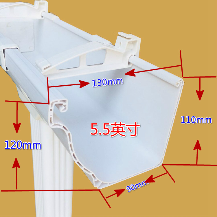 天沟系统(或称成品檐沟系统)能有组织地将雨水合理地排离建筑物而防止对屋面,墙面和地基造成损害,因而是现代别墅及多层建筑的必选产品。成品天沟系统在欧美国家广泛使用。简洁的造型和流畅的排水性能使其成为成品天沟系统中的经典。 5.2英寸K形天沟落水系统主要用于别墅和小型商业(公共)建筑多层公寓以及中型商业(公共)建筑。性价比高:受力构件可承受30公斤的力,大幅度增加受力安全性,并且配置更少,全面减少总造价,性价比更高;安装易学便捷:配件少,安装易学,配件间连接自然可靠。